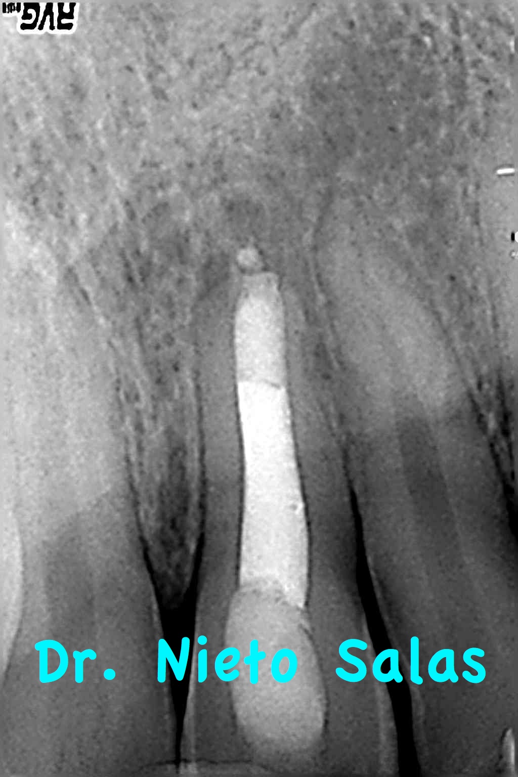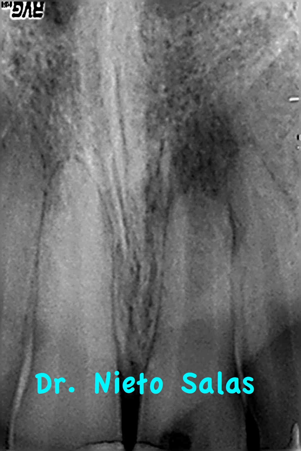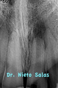 le hacemos una Rx y vemos que se trata de un diente con ápices abiertos: