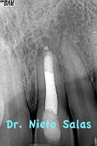 Es un tratamiento que hicimos colocando una barrera apical con M.T.A., consiguiendo un sellado apical  posteriormente rellenamos el tercio medio coronal (backfilling) con gutapercha inyectada.