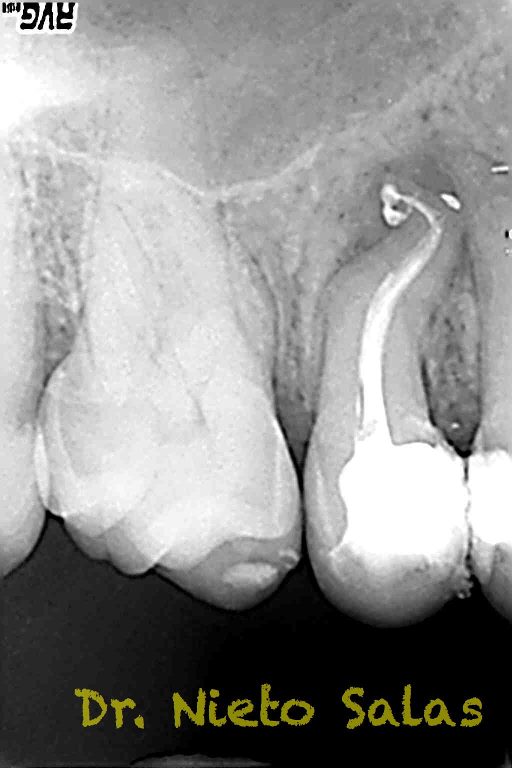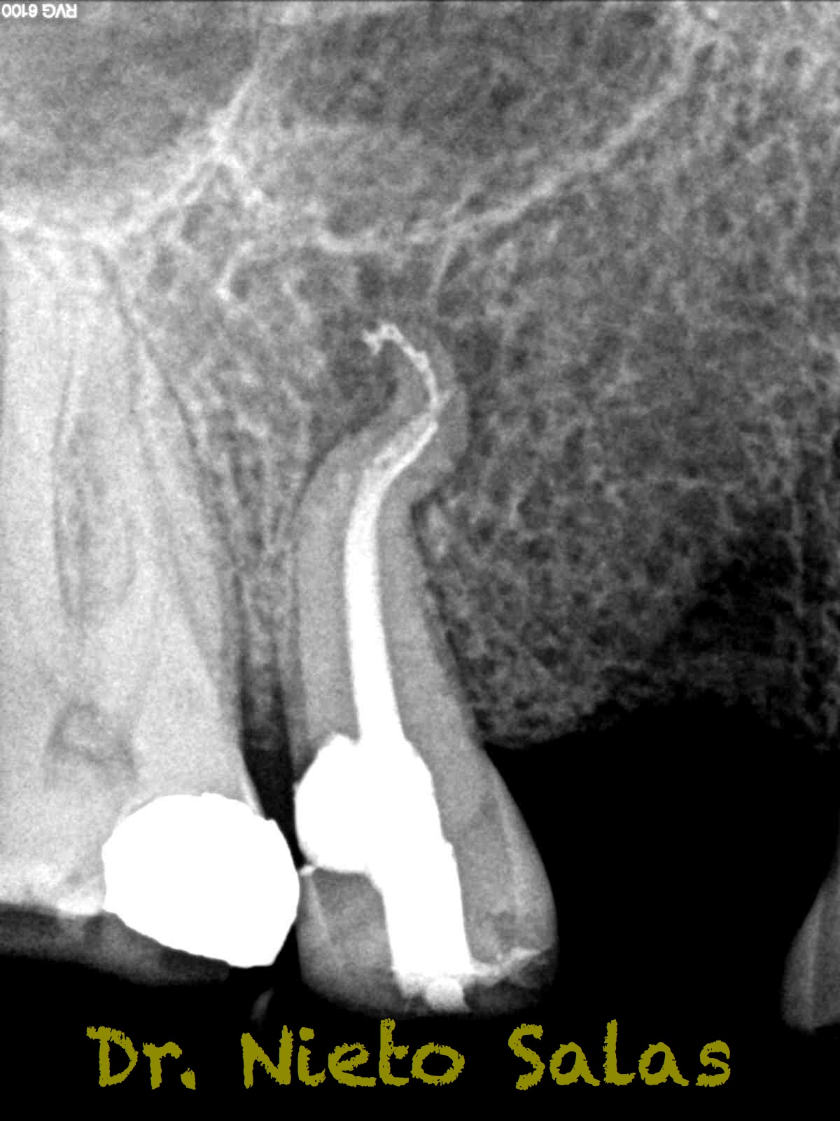 Con respecto a lo puramente endodóntico, la verdad que fueron unos casos de verdadero estrés para no perder la permeabilidad ni la long de trabajo, con técnica corona-apice y con un diametro apical de 20, instrumentado solo la parte apical con limas de Mtwo , la parte coronal me ayudé de ultrasonidos. No sé, que más contarte con respecto a la conformación de los conductos.
