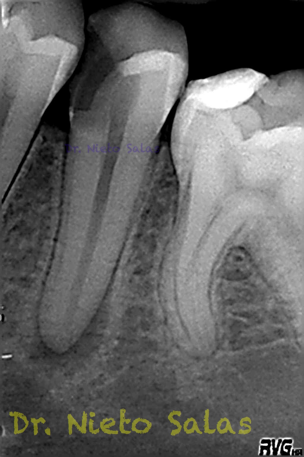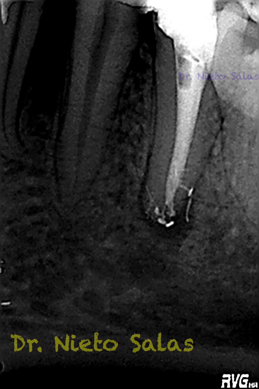 Pero no todo se va a dejar al «poder de la irrigación»,  es muy importante la biomecánica, y la intuición para poder instrumentar esos pequeños conductos laterales que es muchas ocasiones nos dan problemas. Así, pues, os pongo un par de casos que con ayuda de esta «intuición» pudimos hacer un buen tratamiento.