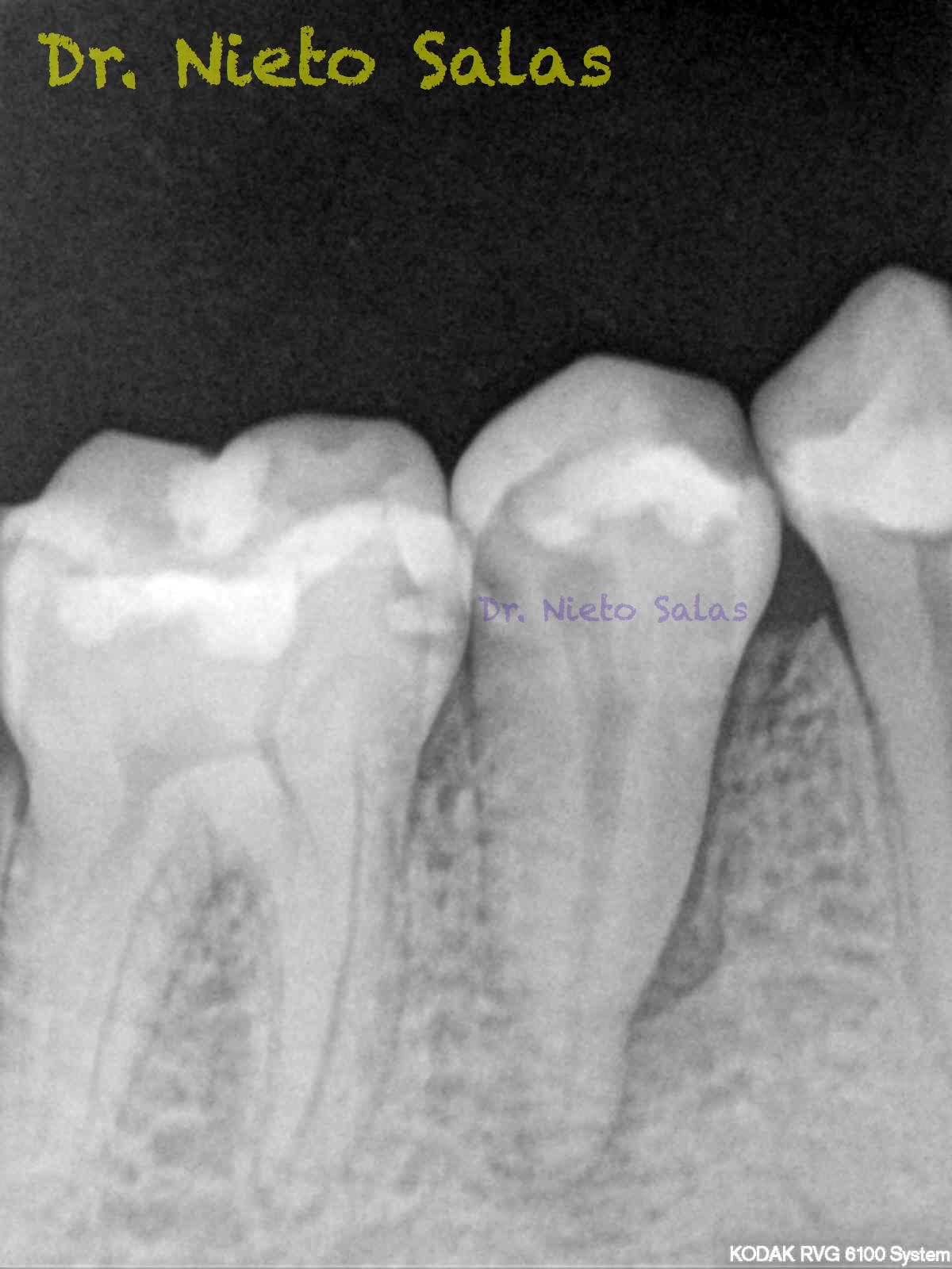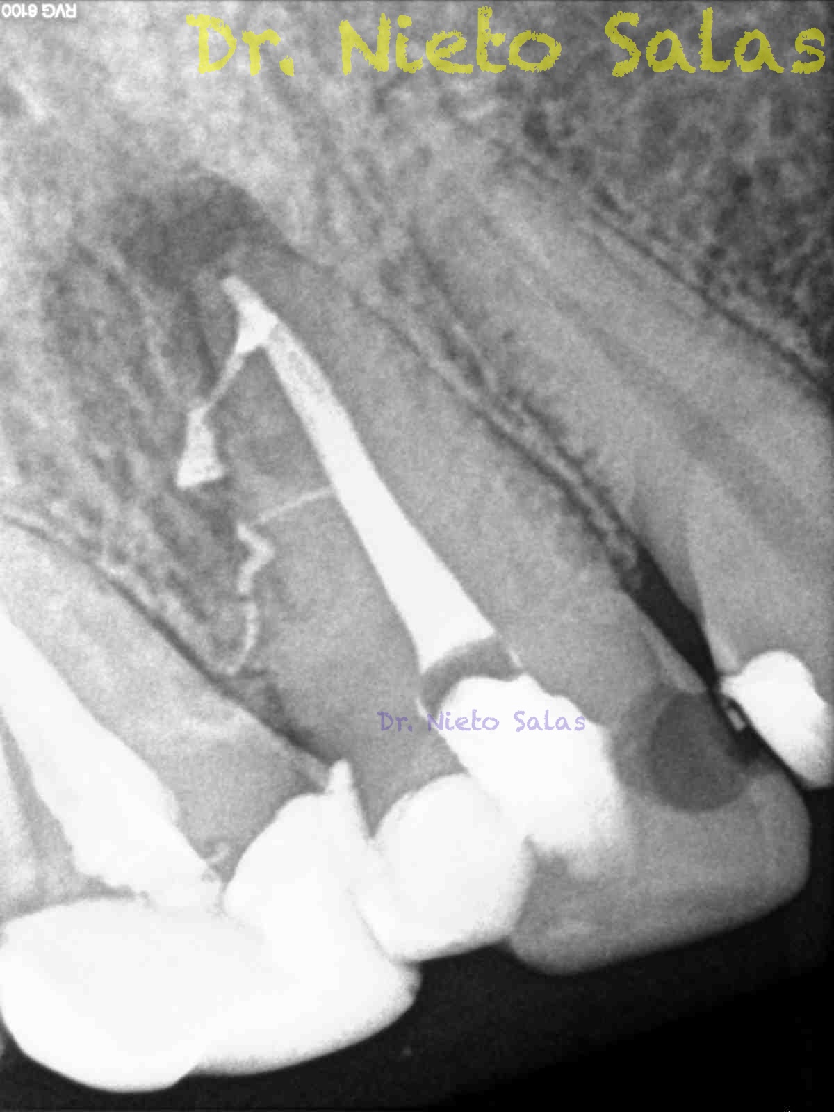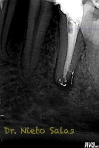 Como sabrás, son muchas las piezas dentarias que presentan conductos laterales, lo primero, es descartar que la imagen pueda ser una fractura vertical, después conformo el sistema de conductos, y si sospecho de un conducto lateral ( INTUICIÓN ) precurvo una lima de pequeño diámetro y exploro las paredes en la zona de puede estar. En ocasiones, puedes ver un pequeño puntito, la entrada, con el microscopio. (es raro).