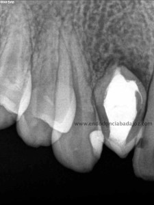 Acude a nuestra consulta remitido por un compañero una pieza 1.2 , se trata de un «Dens in Dente», son casos complejos de tratar por que no tienen un sistema de conductos muy definidos. Para saber un poquito más de anomalías dentarías podemos acceder a este link: http://www.carlosboveda.com/Odontologosfolder/odontoinvitadoold/odontoinvitado