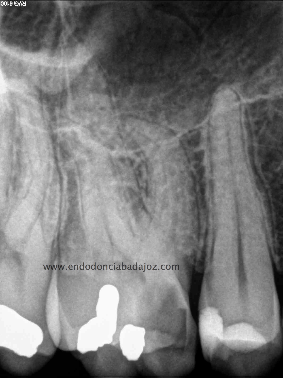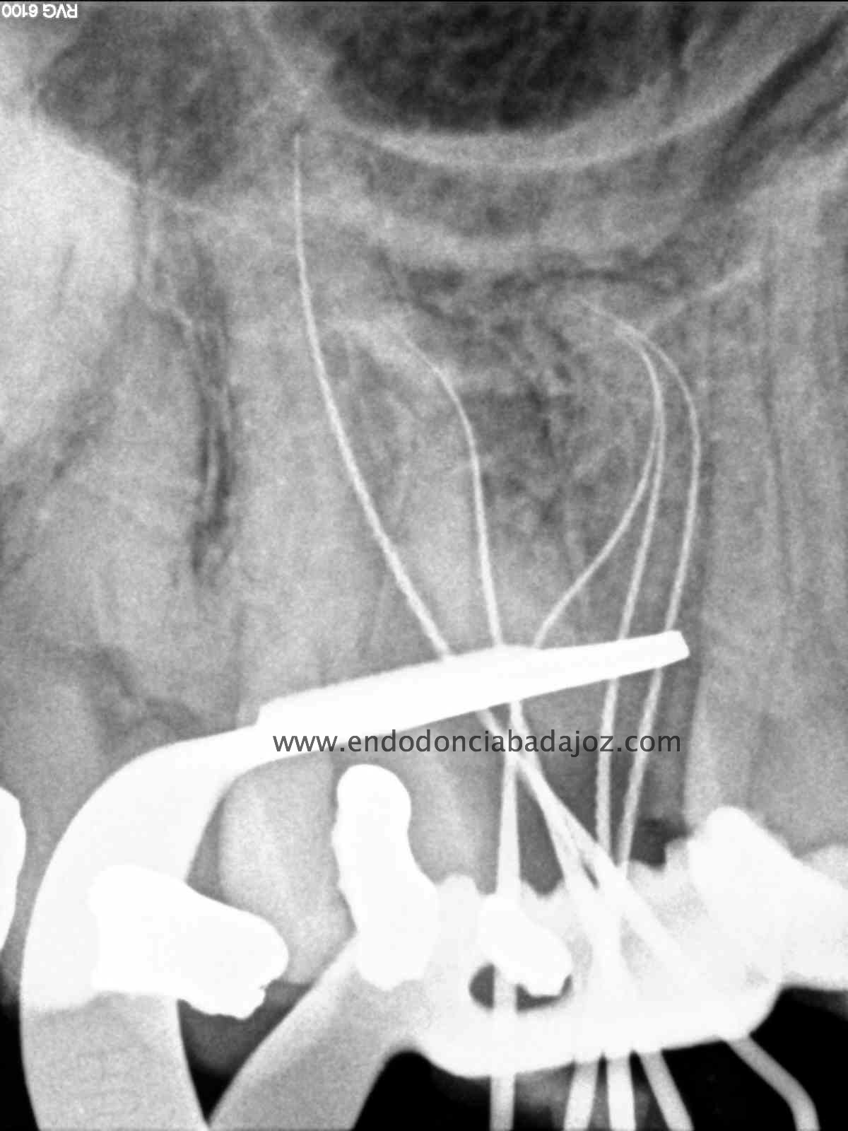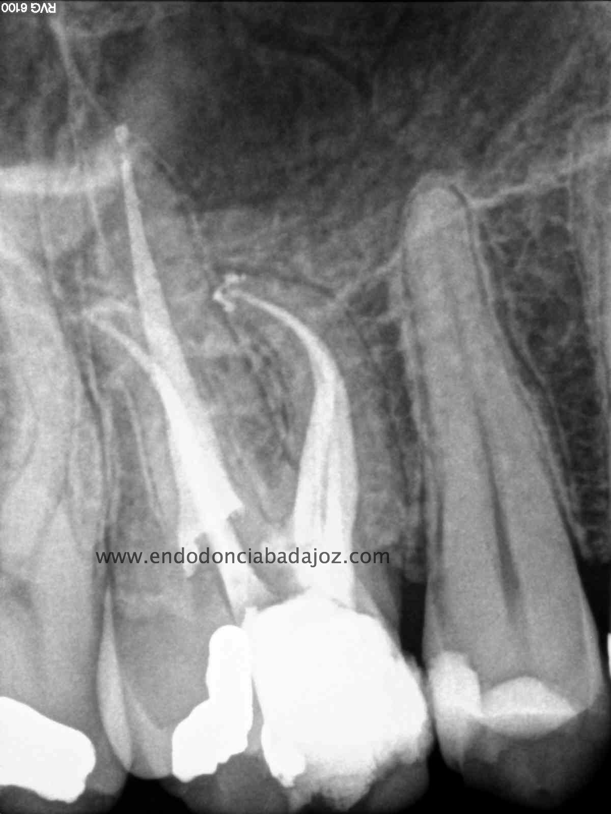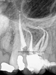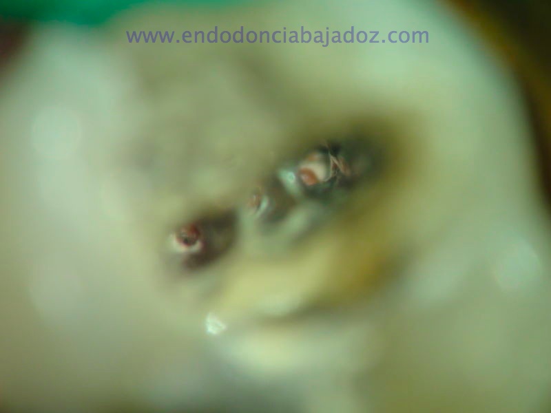 Esta última foto corresponde con un caso de un primer molar superior que la Rx no me esperaba que tuvieses tres conductos mesiales: