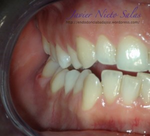 Ante las pruebas diagnósticas, nos fijamos en una fístula muy coronal, un sondaje vestibular puntual, esto nos hace pensar en un diagnóstico diferencial con un Sindrome de Diente fisurado.