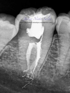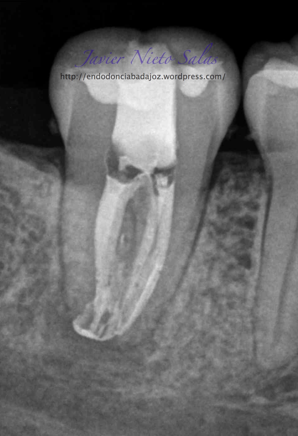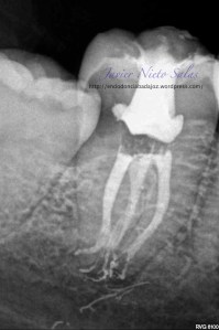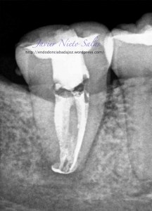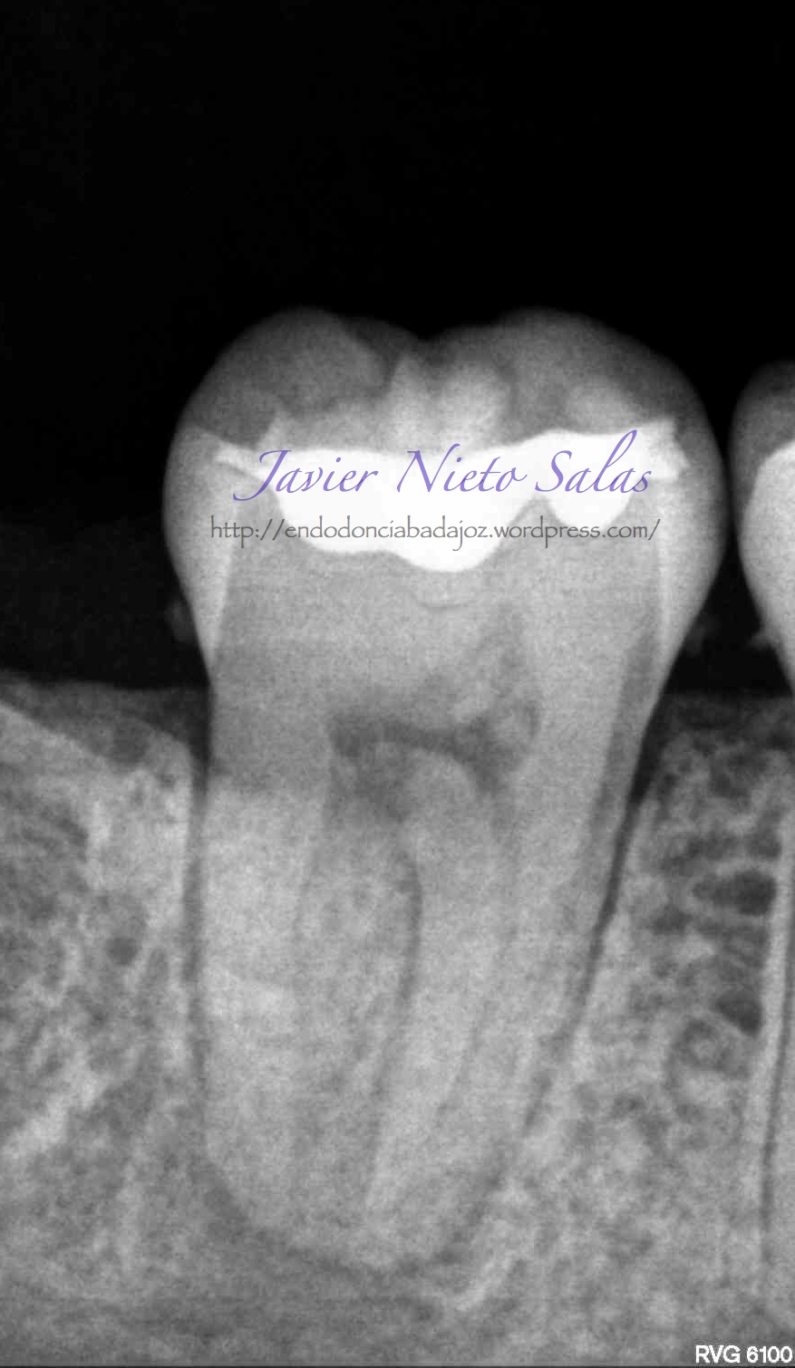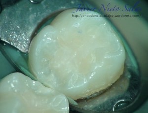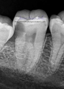 Los segundos molares inferiores como ya hemos dicho en algunas entradas anteriores, pueden resultar complicadas en los casos de la disposición del sistema de conductos en «C» diagnosticados desde el principio gracias a la Rx. Pero en otras ocasiones, lo hacemos durante la operatoria, como ya veremos.