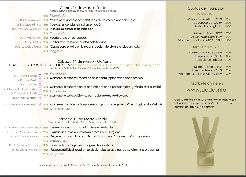 Se agradece que cuenten con uno…… nunca me planteé poder hacer lo que llevo haciendo una temporada, dar algunas charlas de endodoncia, quizás lo haga como reto personal, o simplemente, que creo que tengo la obligación de defender un tratamiento odontológico del que cada día aprendo y del que pienso y veo que es muy predecible, la ENDODONCIA.