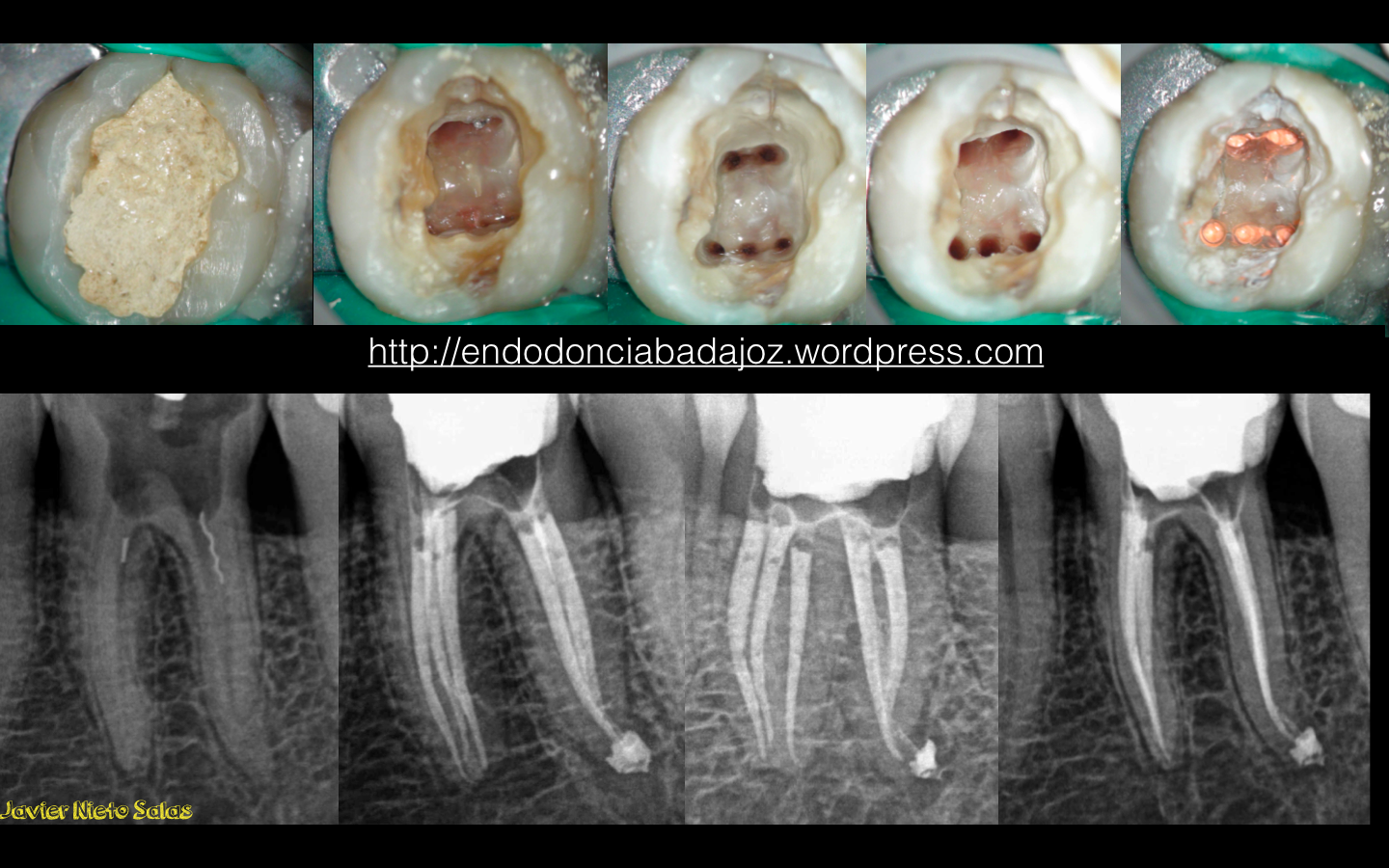 En la secuencia fotográfica y radiográfica del caso, podemos ver que en el diagnóstico inicial, vemos un par de limas separadas, y una gran apertura con una línea de fisura distal que no sabemos su alcance. Siendo, estas dos situaciones las que me van a determinar el pronóstico del caso: