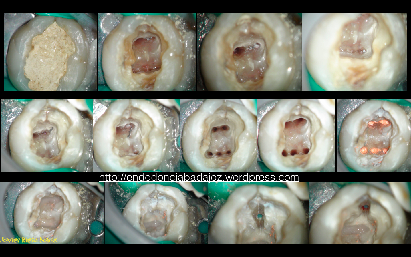 Instrumentamos los conductos con el Sistema Mtwo, con una conicidad de 25.6%, y la técnica de obturación que usamos fue una Condensación vertical con ola continua de Buchanan modificada. Hacemos un sellado coronal con composite fluido.