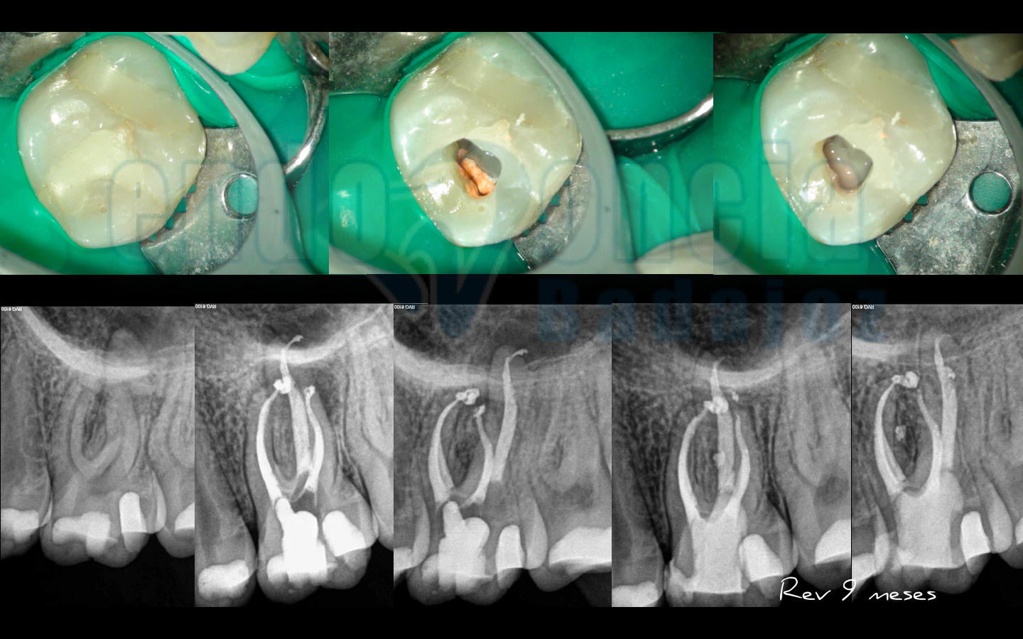 Molar superior con Periodontitis Apical Asintomatica con lesión periapical que al los 9 meses va regenerando perfectamente.
