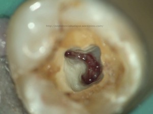 Los segundos molares inferiores como ya hemos dicho en algunas entradas anteriores, pueden resultar complicadas en los casos de la disposición del sistema de conductos en «C» diagnosticados desde el principio gracias a la Rx. Pero en otras ocasiones, lo hacemos durante la operatoria, como ya veremos.